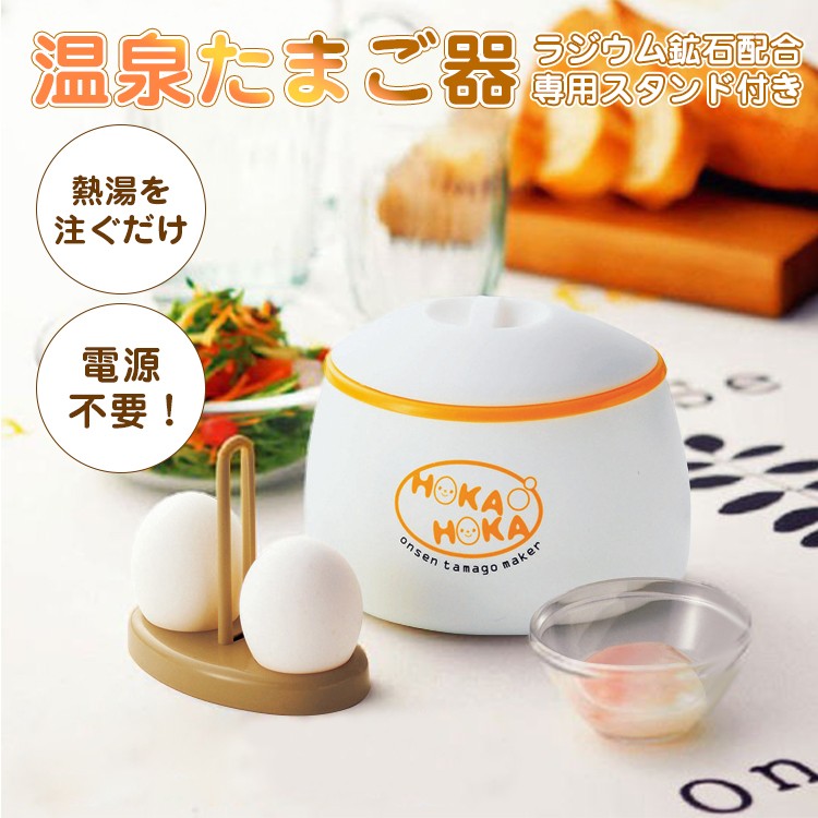 温泉卵器 温泉たまご器 温泉たまごメーカー 電源不要 温泉卵メーカー 熱湯を注ぐだけ ラジウム鉱石配合 専用スタンド付き まろやか温泉たまご器
