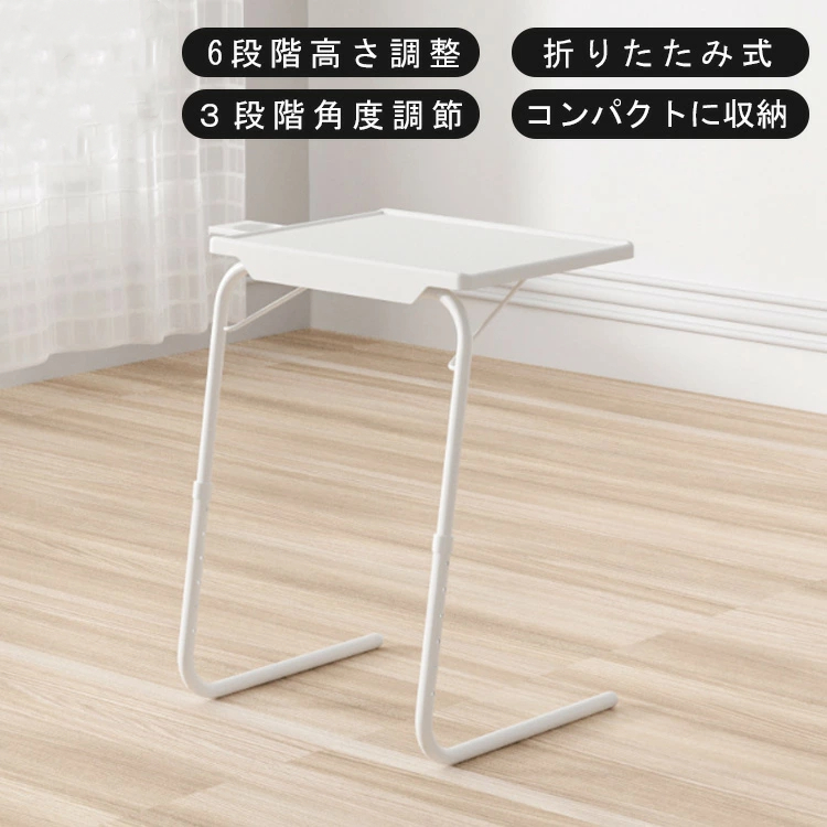 テーブル 折りたたみ サイドテーブル 高さ6段階調節 机 おしゃれ 一人用 ノートパソコン テーブル ベッドサイドテーブル 省スペース パソコン デスク 軽量