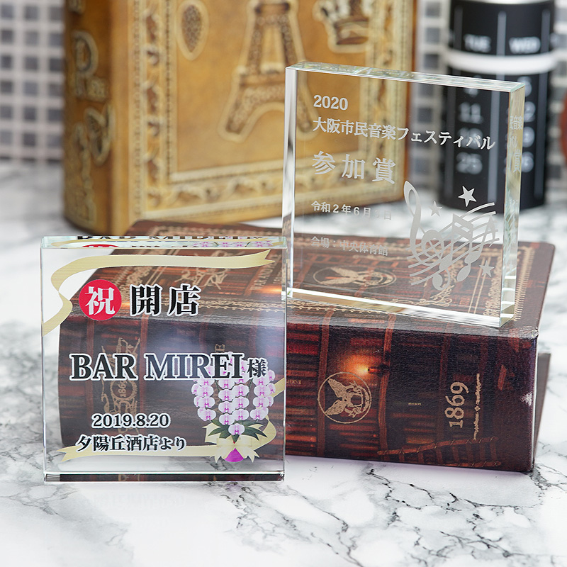 クリスタルガラスの表面にメッセージ・記念日・お名前などをカラープリントを施し、世界でただ一つのあなただけのオリジナルギフトをお作りします。 お祝い・ギフト・退職記念・長寿祝・会社記念・卒業記念にどうぞ!デザインはテンプレートよりお選び下さい。