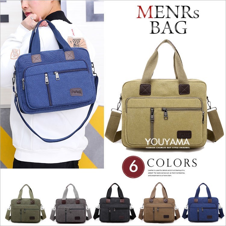 ショルダーバック 斜めがけ 手提げかばん キャンパス マルチポケット バッグ メンズ カジュアル トートバッグ メンズバッグ カバン キャンバスバッグ 通勤
