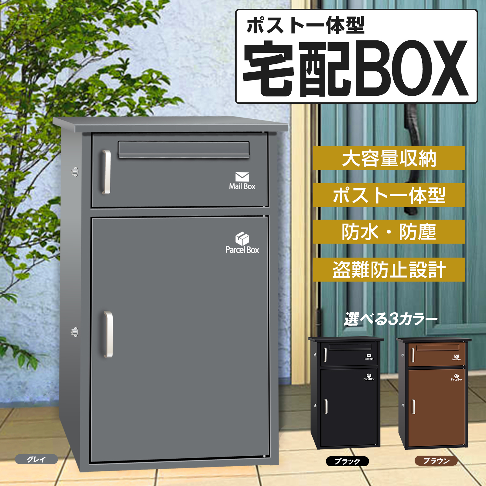 | 特徴 | 【宅配ストレスから解放】 留守でも在宅時でも楽にお荷物を受け取れます!入浴中、トイレ中、料理中、電話中、子どもの相手をしていて手が離せない時、宅配業者と対面せずに配達してもらえるこの宅配ボックスで、とても安心です!※本品は取り組み必要があります。作業中に必ず軍手を付けてケガをしないよう気をつけてください。 【配達方法説明・印鑑収納】 配達員様への使用説明シール付き、用途に合わせて好きなところに貼ってください。下扉の内側に印鑑収納があり、配達の荷物を入れたら、ワンタッチロックを押してロック、配達完了! 【ワンプッシュ施錠】ワンプッシュシリンダー錠を採用。配達員さんに押して貰うだけで施錠完了。開錠は鍵を使って行うのでセキュリティ面でも安心です 【持ち去り防止】 1.本製品は固定アンカーが付属しております。取っ手や策などに取り付けて持ち去り防止で不在時も安心です。 2.本製品はワイヤーが付属しております。取っ手や策などに取り付けて持ち去り防止で不在時も安心です。 | |