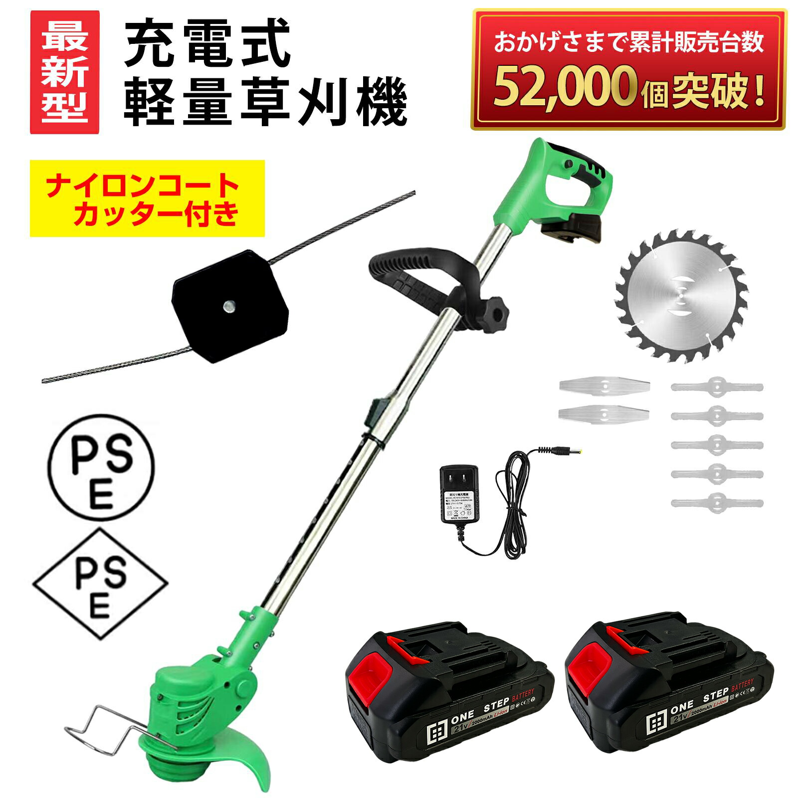 草刈り機 草刈り機充電式 替刃付き 枝切り 芝生庭 畑 雑草 草 植木 刈払機 【バッテリー2個セット付き】1年保証付き