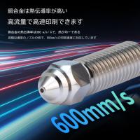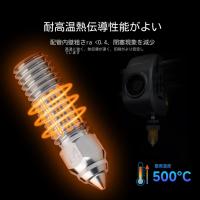 バイメタル材料ノズル: 銅合金と硬化鋼製。銅合金の熱伝導率は 330W/mk と高く、ノズルがより均一に加熱されます。体積を拡大し、600mm/sの高速印刷に対応しました。