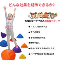 【休校でも体を動かす!室内使用OK】バランスストーンは川辺で飛び石をけんけんして進む、その動きを取り入れた室内遊具です。遊びを通してバランス能力や動的柔軟性が向上し、 体幹の強化をはかります。幼児期に、怪我がしにくい姿勢や身体の使い方を習得できると、今後のあらゆるスポーツに活かせます。
