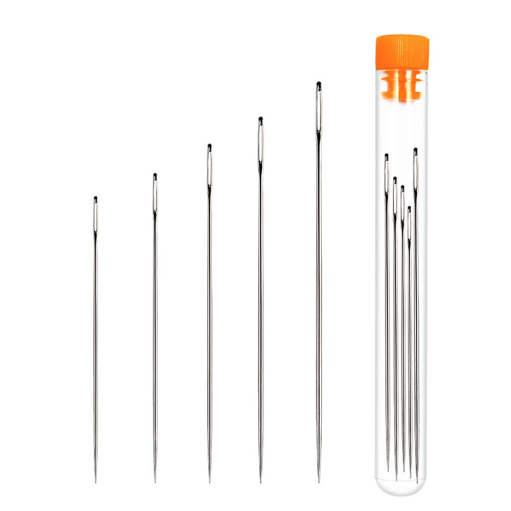 パッケージ内容:5サイズの異なる縫い針(89mm/100mm/125mm/150mm/175mm)、収納ケース×1。基本的なニーズを満たすことができる。大人気の手芸用の手縫針です。