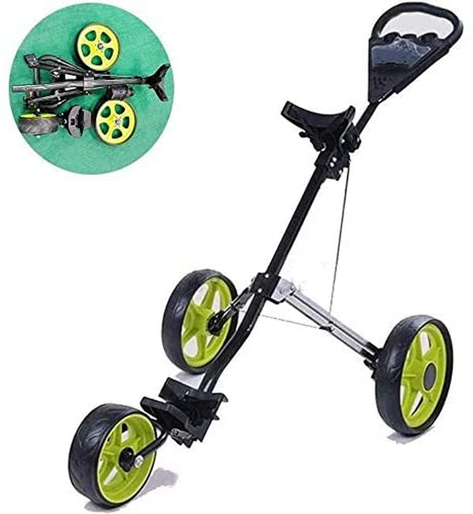 ゴルフプッシュカート、3輪プッシュプルゴルフカート、軽量折りたたみ式ゴルフトロリー、ドリンクホルダーシート付き、折りたたみカートを開閉するのに1秒