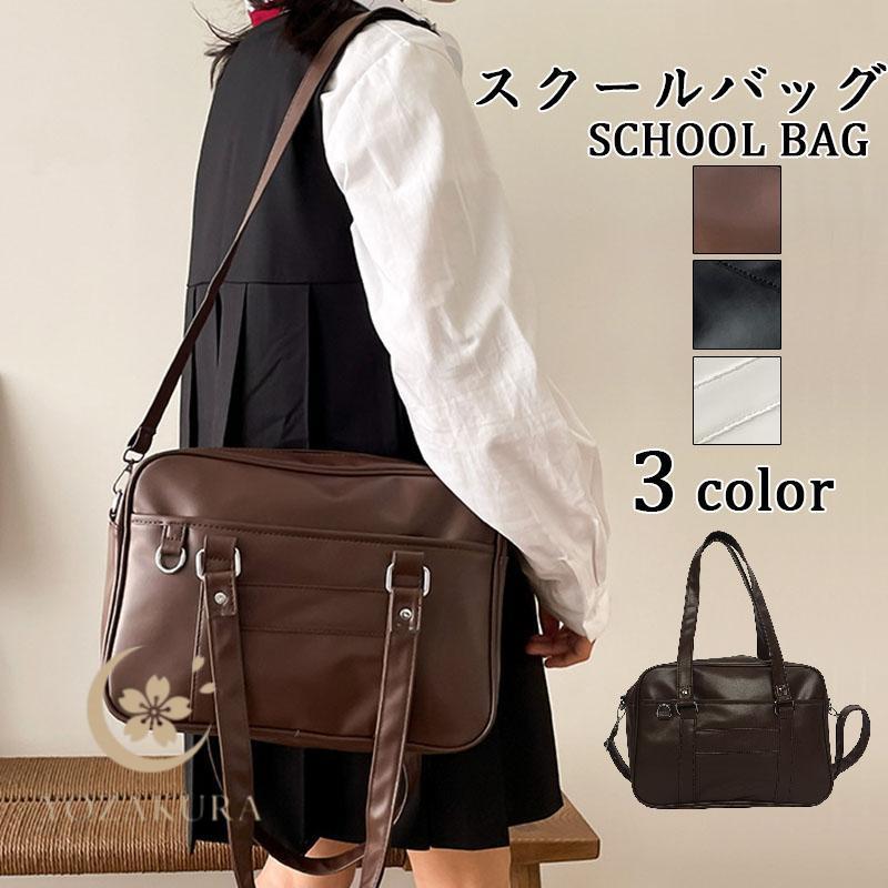 スクールバッグ 制服バッグ 肩掛け 学生鞄 中学生 高校生 合皮 通学 手提げ 男女兼用 プレゼント 軽量 無地 大容量 おしゃれ PUレザー トートバッグ