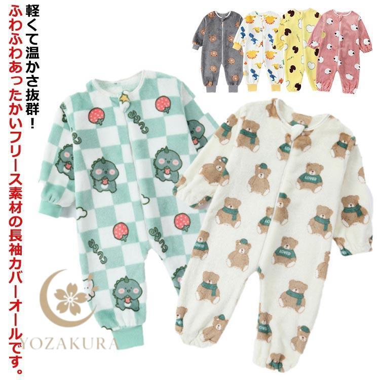 ベビー パジャマ ロンパース 着る毛布 フリース スリーパー フランネル 長袖 前開き カバーオール 子供服 おくるみ ファスナー 秋