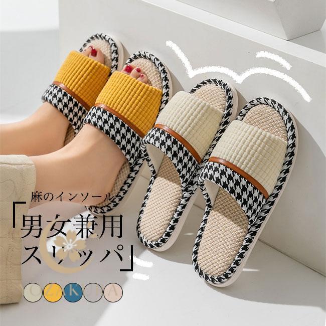 スリッパ 夏 男女兼用 リネンスリッパ 春 秋 ルームシューズ かかとなし 3cm底 千鳥格子 レディース メンズ 麻 快適 涼しい 前開き 夏スリッパ