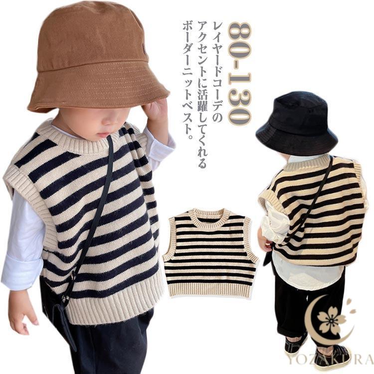 ニットベスト ボーダー柄 ベビー 子供服 ベビー服 キッズ 男の子 女の子 春 秋 冬 春服 秋服 冬服 子ども服 子供 クルーネック プルオーバー