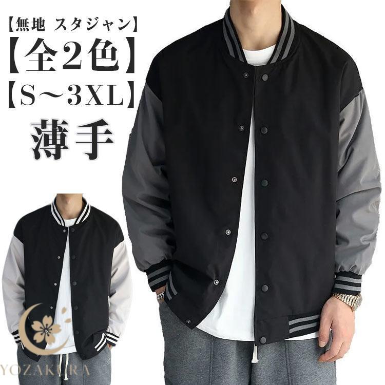 スタジャン メンズ アウター ブルゾン ジャンパー 薄手 ジャケット シンプル 無地 羽織り 長袖 春 秋 冬 オールシーズン ゆったり 大きいサイズ