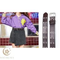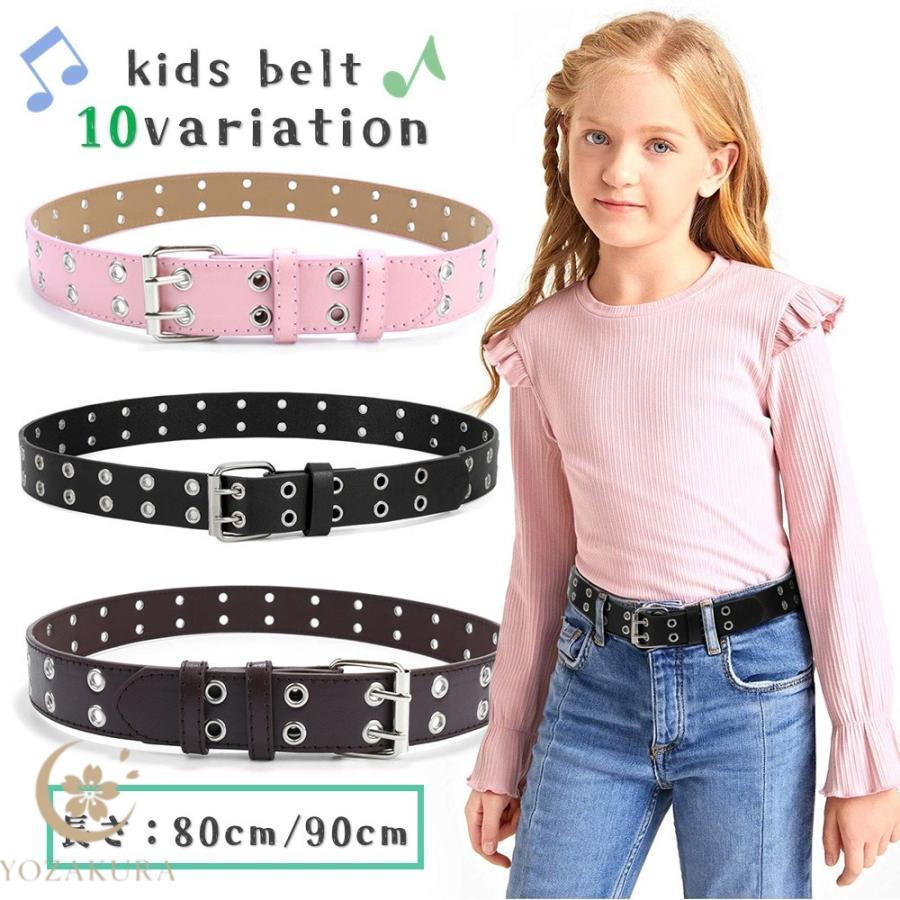 ベルト レザー調 ダブルピン ダブルアイレット ダブルハトメ 穴あり 太め キッズ 子供用 男の子 女の子 男女兼用 こども用 おしゃれ シンプル カ