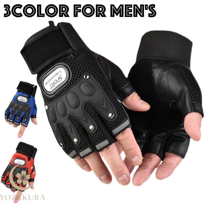 手袋 フィンガーレスグローブ 指なし手袋 滑り止め付き マジック テープ 反射材 メンズ 男性 スポーツグローブ ショートグローブ 半指 ハーフフィン