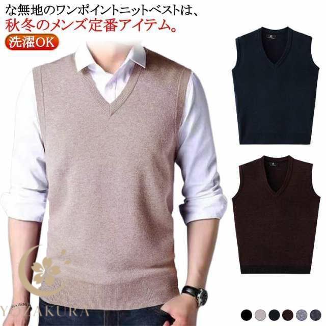 ニット ビジネス ベスト メンズ Vネック ウール ニット 父の日 ブレンド ウォッシャブル カジュアル メンズ 洗える オフスタイル 無地 秋冬春