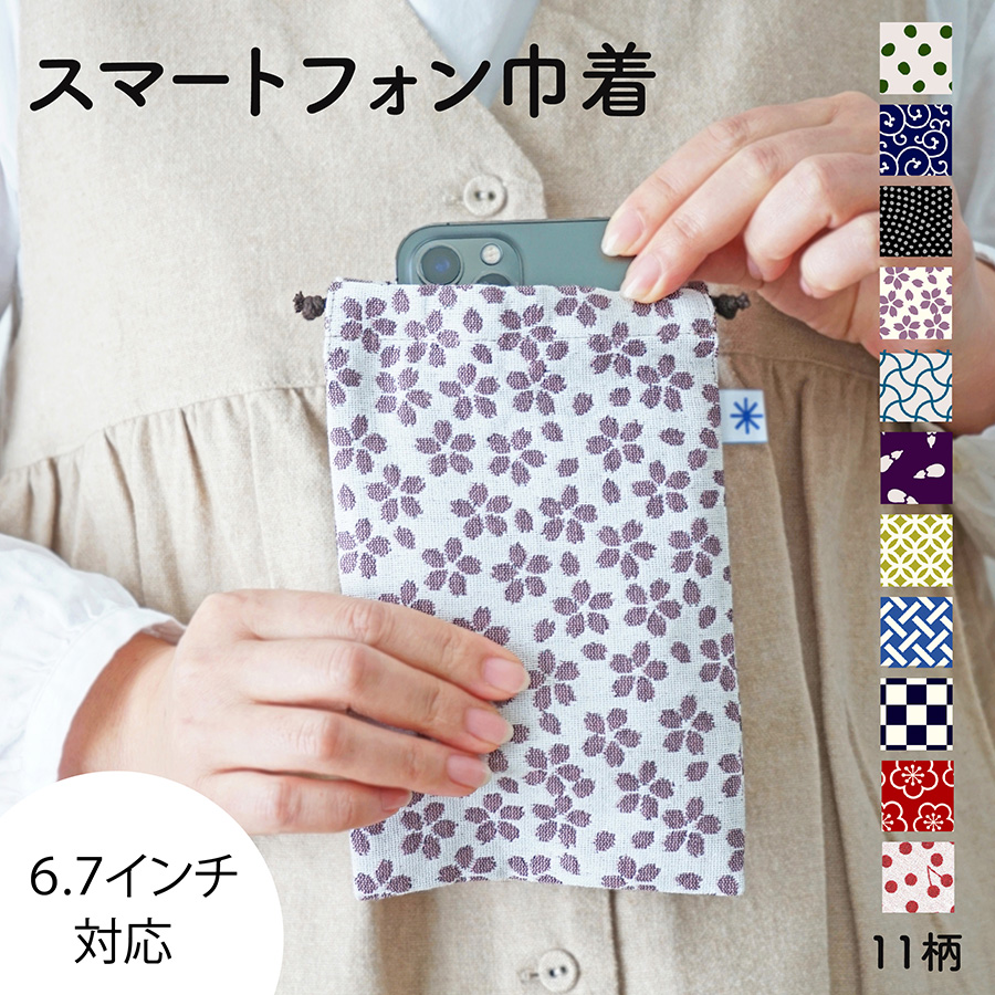 スマートフォン 巾着 大きめ 和柄 スマホポーチ 大人 おしゃれ かわいい レディース メンズ 日本製 米織小紋 布 織物 和雑貨 米沢織 綿100% モバイル 13柄