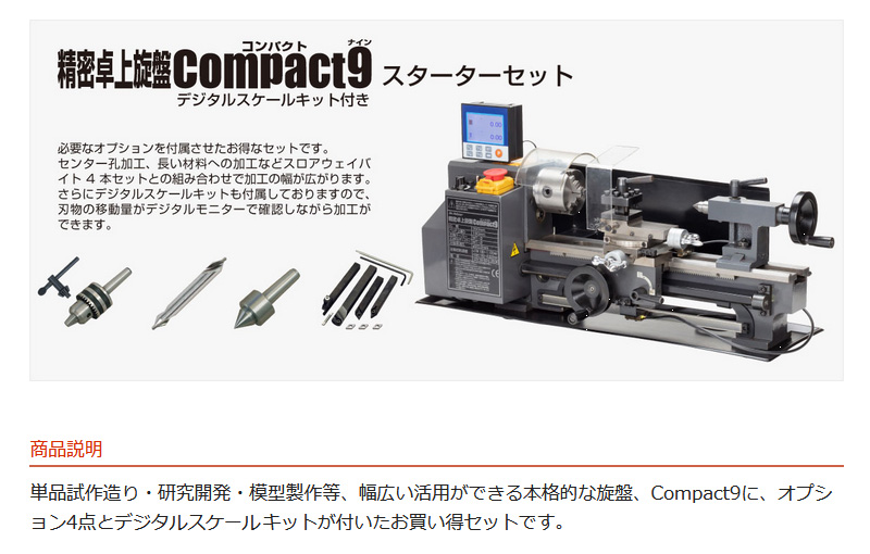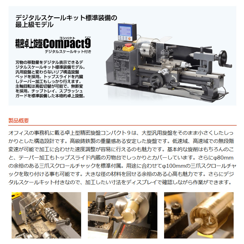 Compact9旋盤(デジタルスケールキット付き)の概要