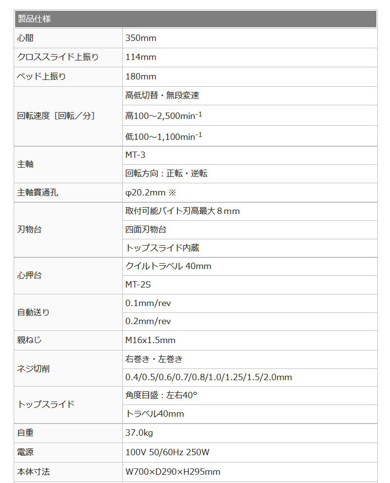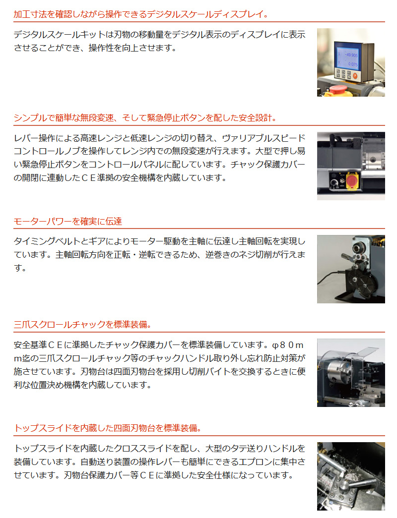単品試作造り・研究開発・模型製作等、幅広い活用ができる本格的な卓上旋盤。
