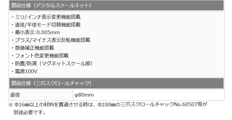 ・加工寸法を確認しながら操作できるデジタルスケールキット付き。