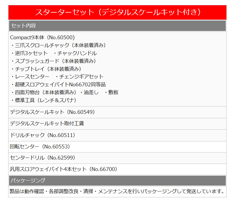 Mr.Meister ミスターマイスター 60576 精密卓上旋盤Compact9スターターセット(デジタルスケールキット付き) コンパクト9 ドリルチャック 回転センター センタードリル スロアウェイバイト4本セット 工作機械 代引不可