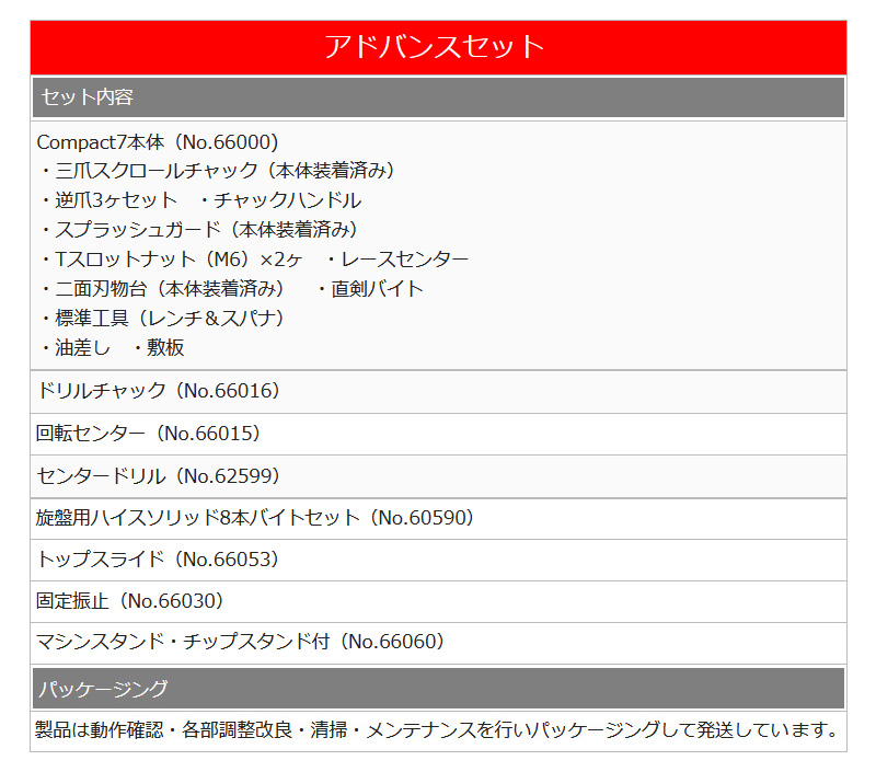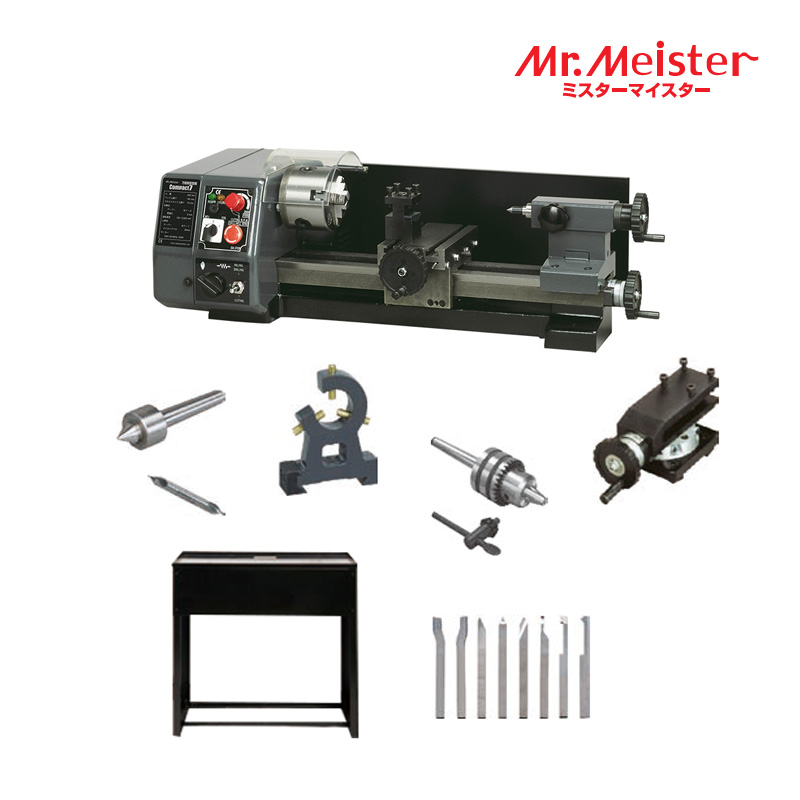 Mr.Meister ミスターマイスター 66078 万能精密旋盤Compact7アドバンスセット コンパクト7 ドリルチャック 回転センター センタードリル ハイスソリッド8本バイトセット トップスライド 固定振止 マシンスタンド 工作機械