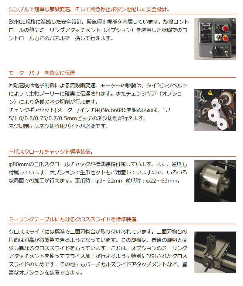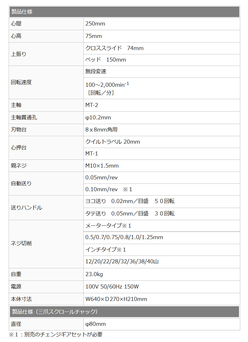 ・主軸はモールステーパーを採用、回転は無段変速。