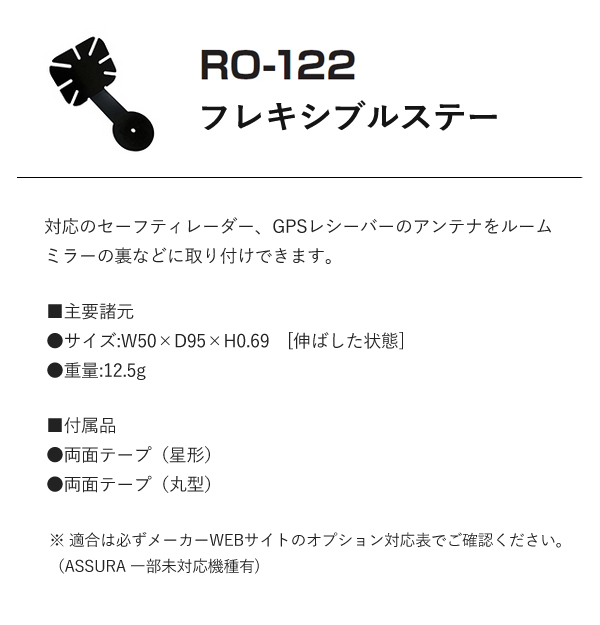 セルスター オプション取付ステー RO-122 フレキシブルステー レーザー探知機 セーフティレーダー GPSレシーバー AR-33 GR-99L用 ルームミラー アンテナ取り付け