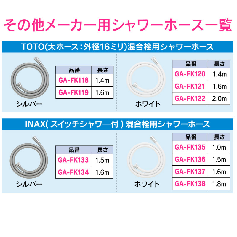 ガオナ これエエやん KVK用 シャワーホース 1.6m シルバー シャワーヘッド側ネジG1/2 ホース 交換用 KVK混合栓用 GA-FK142 日本製 GAONA カクダイ