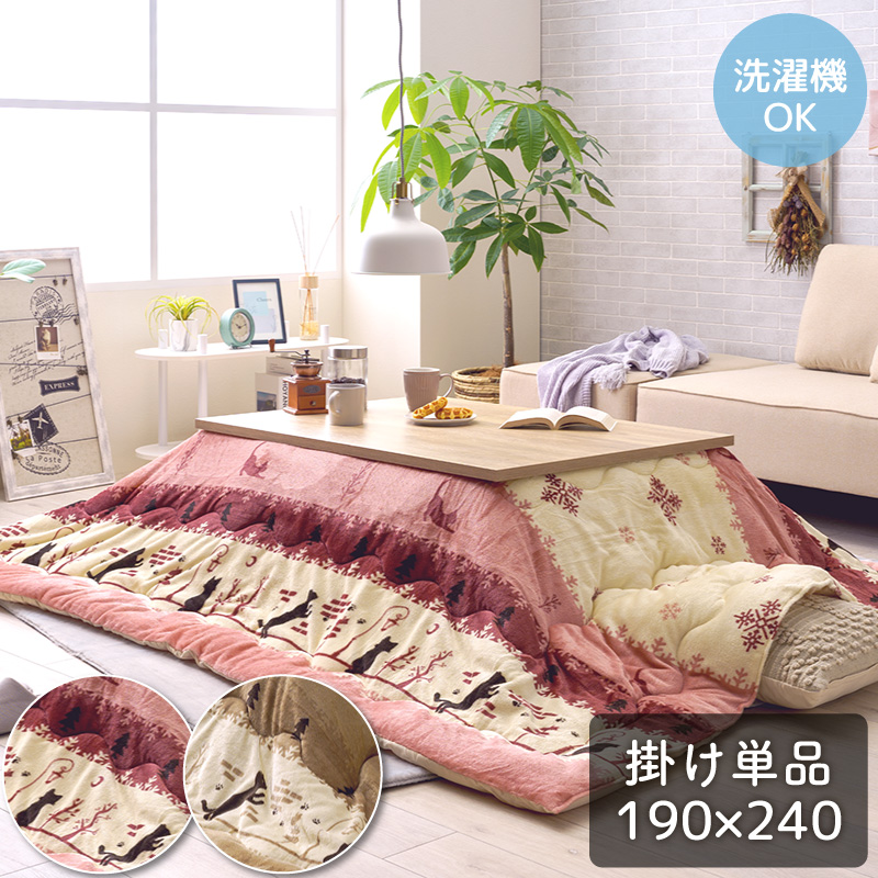 | 製品サイズ(約) | 幅190×長さ240cm 75〜80cm×105〜120cm角のこたつに適応 |