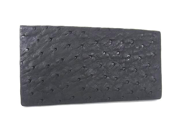 ■極上■本物■ オーストリッチ 二つ折り 長財布 ウォレット 札入れ カード入れ メンズ レディース ブラック系 DH8543