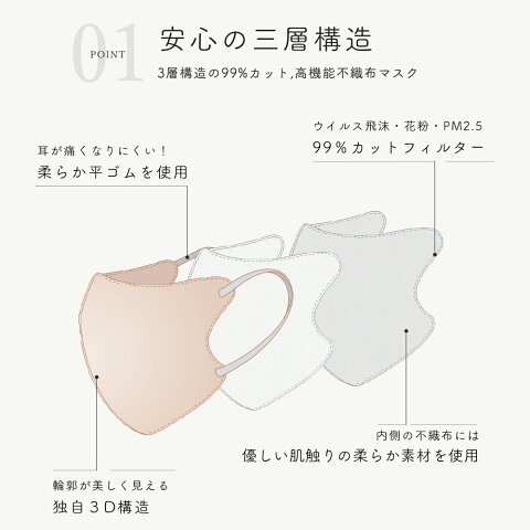 3D立体構造でスッキリ小顔効果も期待できます。<br>