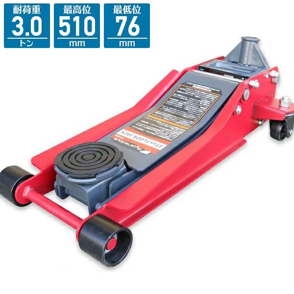 ガレージジャッキ 油圧ジャッキ 耐荷重3t ジャッキ 低床式 フロアジャッキ ローダウンジャッキ 最低位76mm 最高位510mm スチール