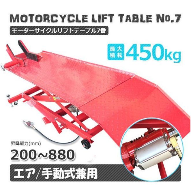 年末超特価フェア バイクリフトテーブル7 / モーターサイクル 小型車〜大型車まで対応 ◆エア式&足踏み式◆ 最大積載450kg
