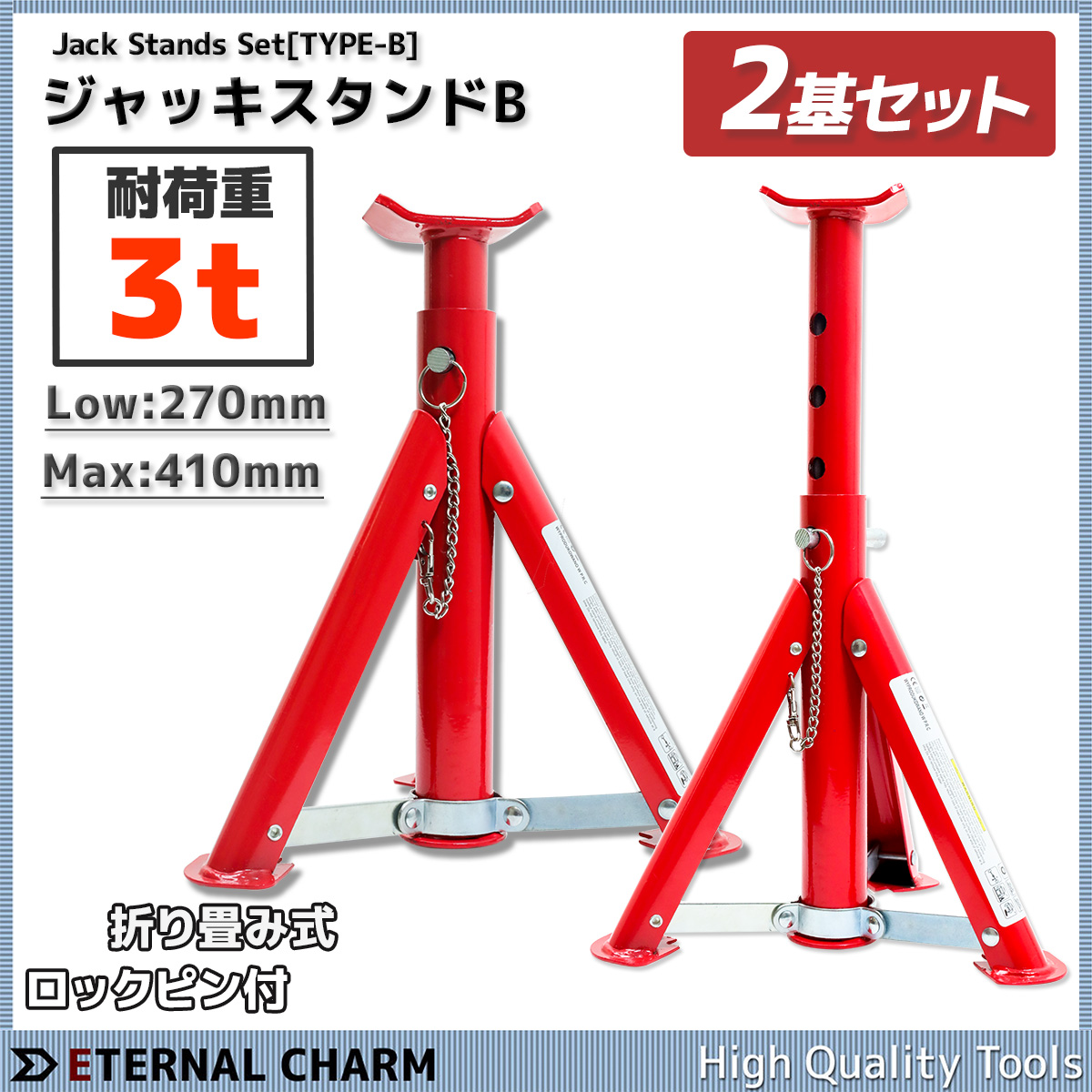 ジャッキスタンド 2基セット 耐荷重3t 折り畳み リジットラック 折りたたみ式 ジャッキスタンドB タイヤ交換 自宅 車 メンテナンス ジャッキアップ