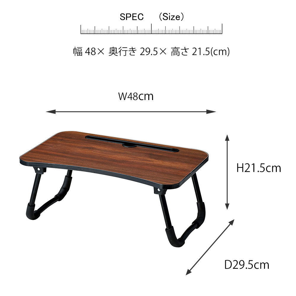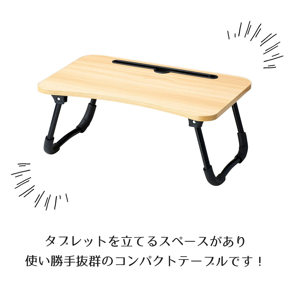 | いつもの場所でパソコンやタブレットが使いやすい! ベッドの上やソファーの上、車の座席などでもすぐに使えるミニテーブル。 スマホ・タブレット・パソコンがいつもの場所でもっと使いやすくなります。 軽量だから、持ち運びも移動もラクにできます。 脚は折りたためるので、使用後はサッとたたんで家具の隙間などに収納できます。 スマホやタブレットを充電しながら使用できるスリット付き。立てておけるので、動画を見ながら手元で作業もできます。 |