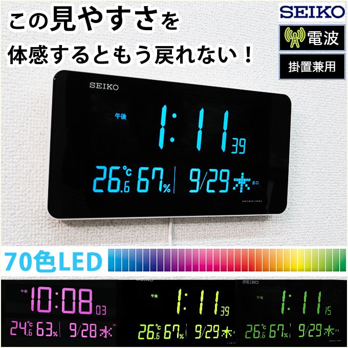 掛け時計 デジタル 電波時計 デジタル時計 おしゃれ セイコー 置き時計 LED カレンダー 送料無料