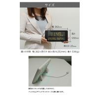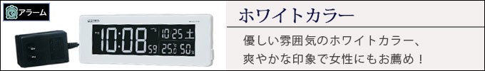 ■サイズ:幅 262×奥行き 23×高さ 132(mm)置いた状態 高さ:125×幅:262×奥行き:66(mm)■重量:530(g)■材質:プラスチック枠:白塗装 前面:プラスチック■機能: 電波修正機能 時刻 カレンダー表示切替 2099年までのフルオートカレンダー機能 六曜表示(2030年12月31日迄) 高コントラスト液晶 明るさ切替機能 置用スタンドつき 石膏ボード用掛金具つき 温湿度表示(温度測定範囲:0℃〜40℃ 測定精度: ±2℃ 湿度測定範囲:25%RH〜85%RH 測定精度:±8%(25℃) 12時間制 24時間制切替式 専用ACアダプター付 バックアップ電池:CR2032