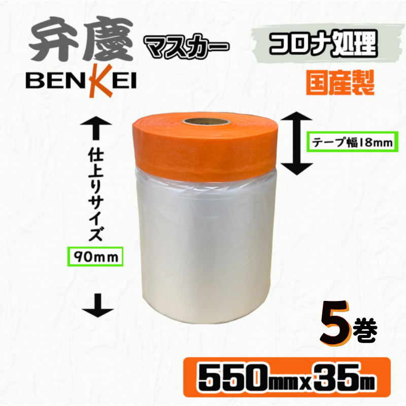 【5巻パック】弁慶マスカー 550mm x 35m カモ井弁慶使用 ポリマスカー 国産 コロナ処理