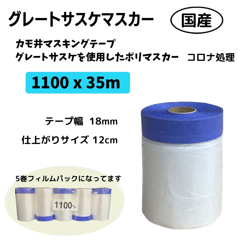 【5巻パック】グレートサスケ マスカー 1100mm x 35m カモ井グレートサスケ使用 ポリマスカー 国産 コロナ処理