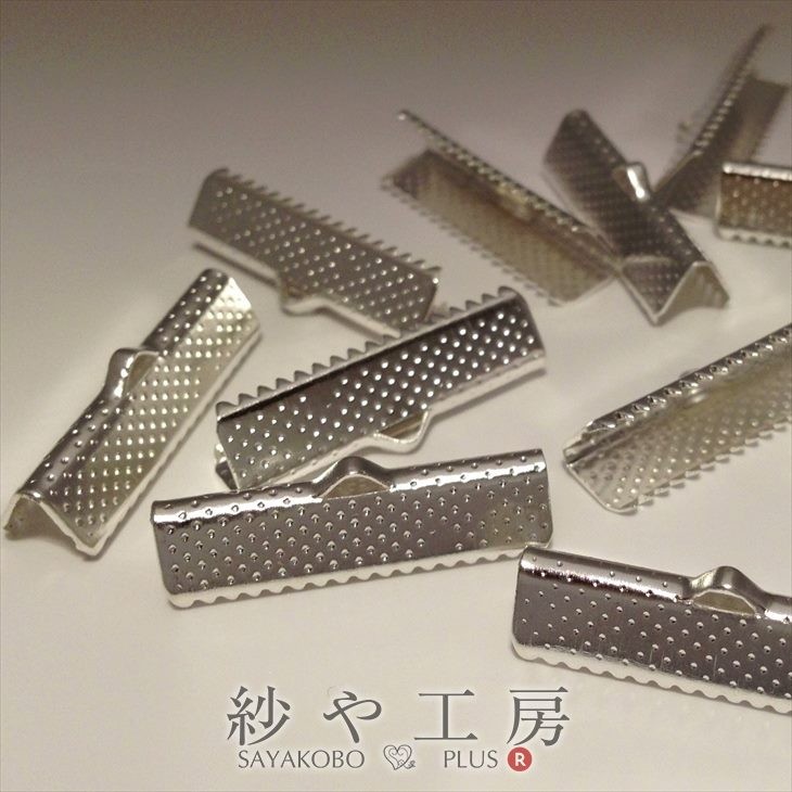レース留め金具・ヒモ留め 約10個 (25mm 2.5cm) プラチナ 白銀 ニッケルフリー 手芸用 金具 材料 手芸材料 パーツ レース タグ