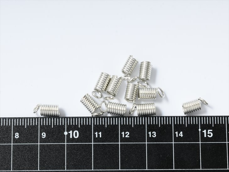 コイルオコシ(約10mm)約10個 シルバー 紐留め金具 エンドキャップ カツラ エンドパーツ ビーズ手芸 レザークラフト 材料 素材 副資材