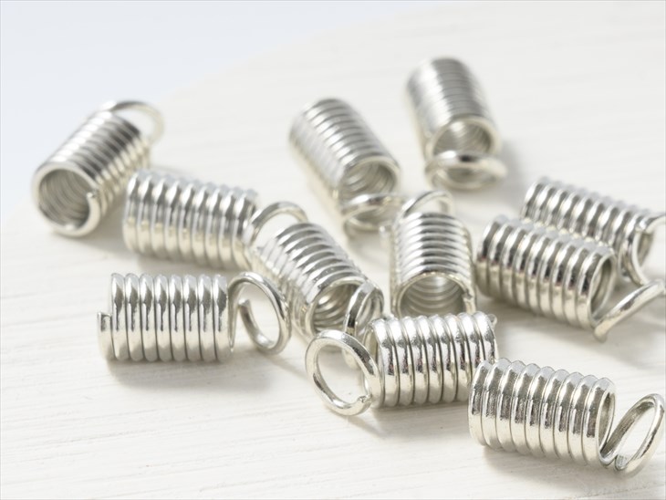 コイル(バネ/スプリング)型の紐留め金具は、シンプルでいながら存在感抜群☆お気に入りのチャーム・天然石・ビーズのジュエリーパーツに合わせて、エンドパーツもこだわっちゃおう!