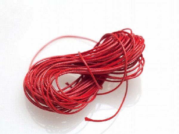 ロー引き紐 径約0.5〜1mm・約5m レッド 赤 ポリエステル カラーワックスコード ロウヒモ 丸紐 ビーズ 手芸材料 ロウ引き紐 蝋引き紐