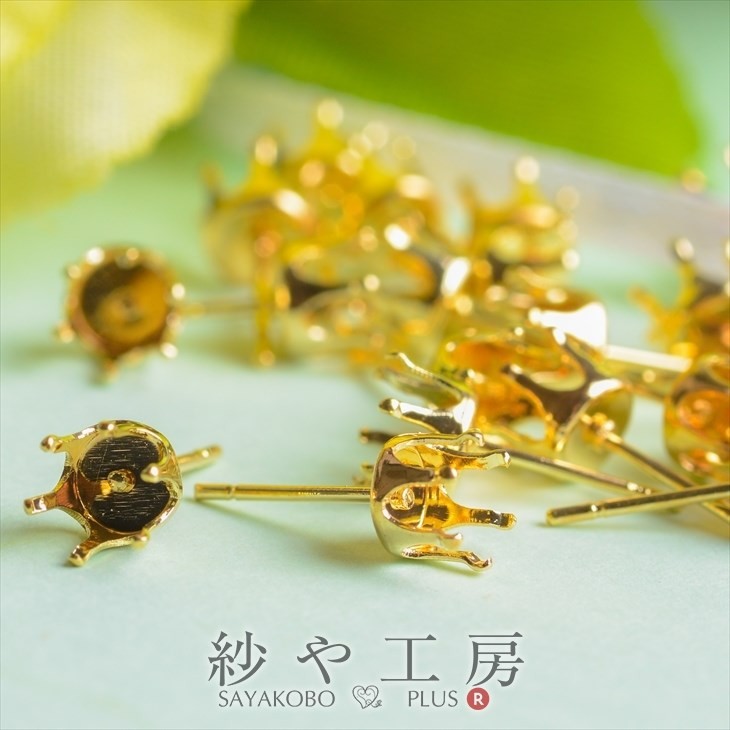 立て爪ピアスパーツ 6mmストーン用(約15mm)約10ペア(20ヶ) 金属アレルギー対応 ニッケルフリー ゴールド 六つ爪 おまけキャッチ付