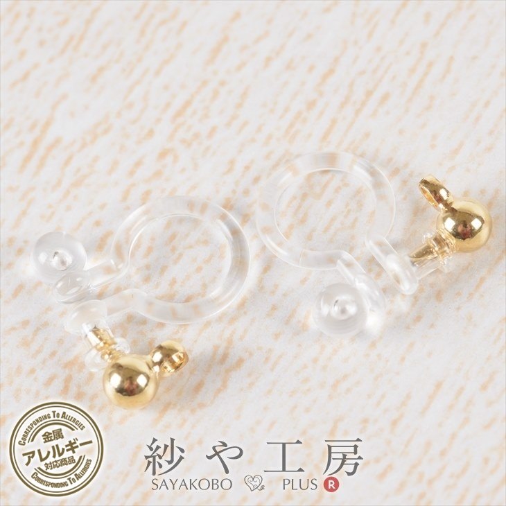 イヤリング パーツ 樹脂ノンホールピアス(約3mm玉)1ペア イヤーカフ イヤーカフパーツ クリアxゴールド カン付き金属アレルギー対応