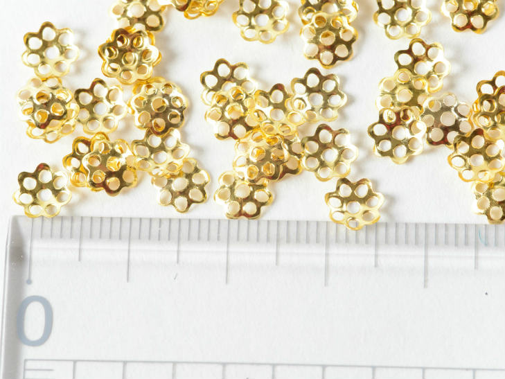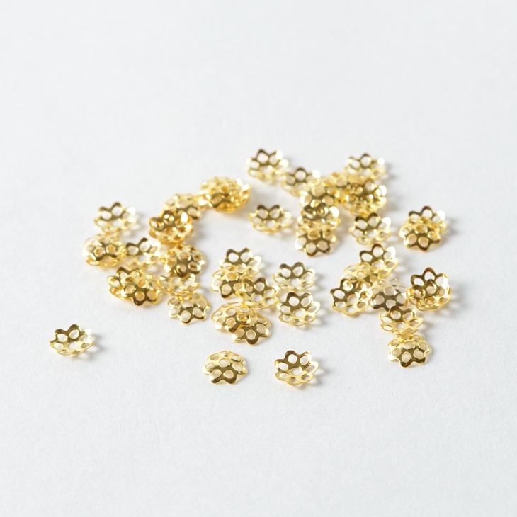 花座・座金パーツ ゴールド スチールメッキ 約6mm 約50個 アクセサリー メタルパーツ ハンドメイド 手作り 部品 材料 チャーム ビーズ