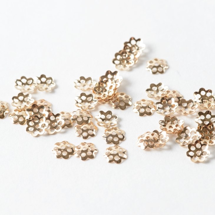 花座・座金パーツ KC金 スチールメッキ 約6mm 約50個 アクセサリー メタルパーツ ハンドメイド 手作り 部品 材料 チャーム ビーズ