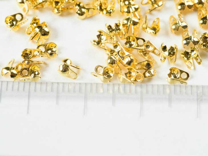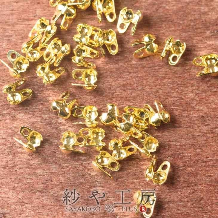 エンドパーツ Vカップ(ボール径:約1.5mm用)ゴールド 約100個 ボールチェーン用 留め金具 端処理 ハンドメイド 通し穴