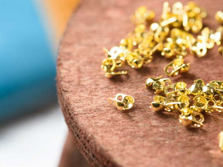 ボールチェーンの端のボールをサイズの合ったVカップの内側の溝に合わせたら閉じて通し穴に丸カンなどを通せば簡単に端処理完成!