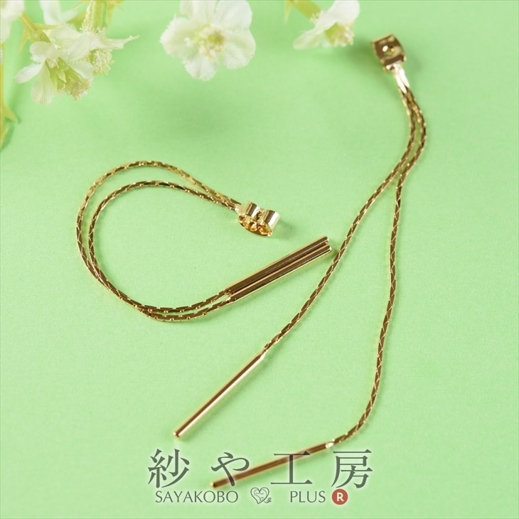 紗や工房オリジナル ピアス キャッチのみ ステック 95mm ゴールド 2個 2ヶ 約9.5cm 揺れる デザイン ロング ショートステック型 真鍮 アレルギー対応