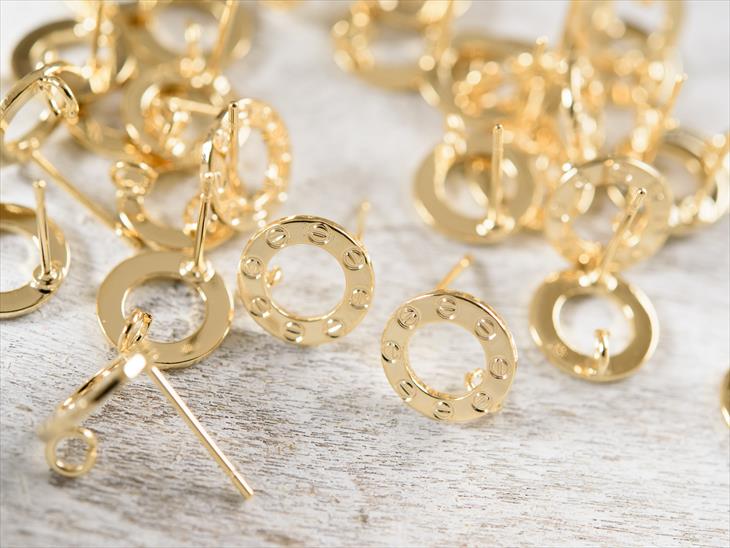 【関連キーワード】ゴールド 40個 40ヶ 約1cm カン付 デザインリング 小 デザインリングピアス 国内本金メッキ製 ハンドメイド リングピアス 金 真鍮 国内本金メッキ製ピアス 国内本金メッキ製パーツ リング型 円 ゴールドピアス ポストピアス デザインピアス ポスト アクセサリー金具 オリジナル金具 金具 アクセサリーパーツ パーツさや工房 沙や工房